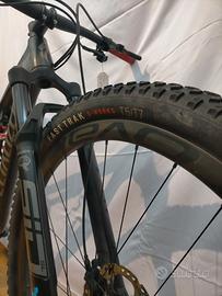 Sospensioni Rock Shox con 100mm di escursione con cartuccia Brain, ruote in carbonio Roval Control Carbon 29", trasmissione Eagle 12v con cambio X01, freni Formula Cura 2 montati come upgrade rispetto agli Sram Level originali, reggisella telescopico.