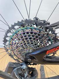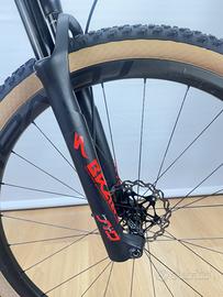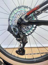 Specialized S-Works Epic del 2019 montata esattamente come di serie con gruppo Sram XX1 elettronico a 12 velocità, ruote in carbonio Roval Control SL, freni Sram Level Ultimate, forcella Rock Shox SID Brain con testa in carbonio, e ammortizzatore Rock Shox Brain. La bici è usata come si può vedere dalle foto ma è stata appena stata revisionata dalla nostra officina con gomme nuove e controllo totale della meccanica ed è tutto funzionante e in perfetto stato. Taglia L adatta per altezze da 176 a 185 cm circa.