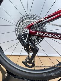 Specialized Epic S-Works del 2021 taglia S montata con nuovissimo gruppo Sram XX SL montato da pochi mesi ed usato molto poco perchè poi sostituita per passaggio ad Epic 8. La bici è tenuta in ottime condizioni il telaio presenta dei segni superficiali di utilizzo visibili in foto, niente di rilevante sull’ integrità del carbonio. La bici è stata da poco revisionata presso la nostra officina, con gomme e manopole nuove e check completo, tutto perfettamente funzionante. Taglia S adatta per altezze al di sotto di 172 cm circa. CARATTERISTICHE TECNICHE: Condizione: Usato Taglia: S Telaio: S-Works FACT 12m Carbon Forca: RockShox SID SL Ultimate Ammortizzatore: RockShox-Specialized BRAIN Ruote: Bontrager Kovee Pro 30 Copertoni: Specialized Fast Track/Renegade Freni: Shimano XTR Sella: Specialized S-Works Power Arc Manubrio: Specialized Alloy Minirise Reggisella: S-Works Fact Carbon Comandi: Sram XX Pod Axe Pacco Pignoni: Sram XX SL T-Type 10-52t Cambio posteriore: Sram XX SL T-Type 12v. Pedivella: Sram XX SL Powermeter Quarq 34t Peso: 9,51 Kg Puoi venire a vederla presso il nostro negozio, inoltre prenotando un appuntamento sarai seguito da un addetto alle vendite che ti dedicherà tutto il tempo necessario. Questo perché l’acquisto presso un negozio non è paragonabile all'acquisto da un privato, la bici verrà spiegata e sarai aiutato nell’acquisto, sarà poi consegnata revisionata e controllata in ogni sua parte. E nostro interesse fornire il massimo del nostro servizio, per soddisfare il cliente! NON SI ACCETTANO PERMUTE, scambi o trattative diverse da quelle in oggetto. Astenersi sognatori, affaristi ecc.. Non vendiamo parti singole se non espressamente dichiarato. Finanziamenti attivabili a tassi agevolati e spedizione con DHL giornaliere rintracciabili. Curiamo con attenzione l'imballaggio della bicicletta in modo tale da proteggere il vostro acquisto durante il trasporto. Contatti: Telefono: 0571 30780 Mail: info@taddeistore.com