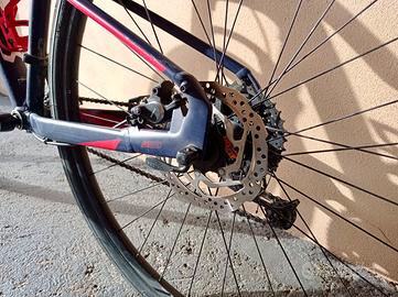 Cambio shimano 9 velocita x 2 corone.Freni a disco shimano idraulici. Forcella ammortizzata Suntur da 100mm.