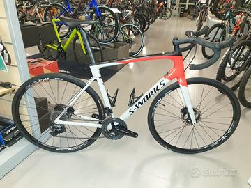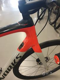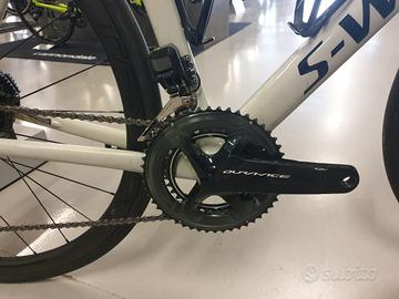 Bicicletta da corsa Specialized Roubaix Sworks taglia 58, gruppo shimano dura-ace di2 2x11v, manubrio Sworks hover carbon 44, sella Specialized Phenom, ruote DT Swiss R470, dischi da 160mm, guarnitura 50-34, pignoni sram red 11-32. Anno 2021.