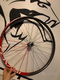 -Mozzo anteriore con corpo in fibra di carbonio elega, asse passante 15mm e fornito con battute 24/28mm per QR