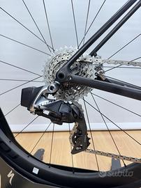 Specialized S-Works Aethos colorazione RTP (Ready to Paint) la più leggera con verniciatura grezza, modello del 2023 in taglia 54 tenuta in modo maniacale con circa 2 anni di vita, non presenta nessun tipo di graffio o segno, sempre utilizzata in modo amatoriale per uscite domenicali e mai fatto gare. Montaggio personalizzato a richiesta del cliente con gruppo Sram Red elettronico a 12 velocità con misuratore di potenza Quarq, ruote Roval Rapide C38 in carbonio con mozzi Dt Swiss 370, manubrio in carbonio S-Works, un vero missile da solo 7 Kg. La bici è stata completamente revisionata prima di essere fotografata, con pneumatici, nastro manubrio e dischi seminuovi da poco sostituiti. Verrà venduta completa di garanzia a vita sul telaio.