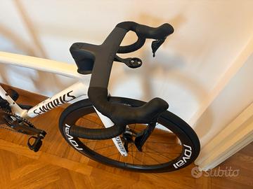 Telaio e gruppo manubrio sono nuovi di zecca (0 km). I componenti sono di seconda mano. Telaio: S-Works Tarmac SL8 (acquistato a novembre 2025). Taglia 49. Gruppo manubrio: manubrio integrato Roval Rapide, nuovo di zecca. Dimensioni 380 mm x 90 mm. Trasmissione: Shimano Ultegra 12v Di2 (serie R8100). Pedivelle 165mm. Piccoli graffi estetici sul deragliatore posteriore e sulle leve. Set di ruote: Roval CLX Carbon. Garanzia: fattura originale (novembre 2025) inclusa per la garanzia del telaio e del cockpit Sella e pedali NON INCLUSI. Eventuale spedizione da concordare (in carico acquirente)