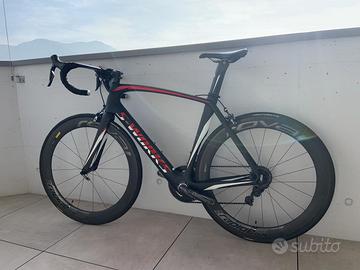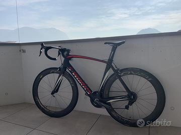 Bici da corsa di livello professionale: telaio in carbonio ultraleggero, gruppo completo Shimano Dura-Ace e ruote Roval Rapide CLX in carbonio. Perfetta per ciclisti esigenti, granfondo e chi cerca una bici performante, reattiva e affidabile.