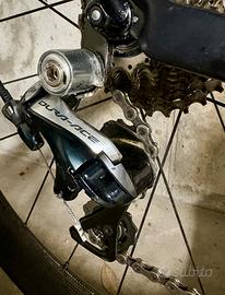 Specialized s-works tarmac sl4 Taglia 56 Gruppo shimano durace meccanico 11v Guarnitura shimano ultegra 170mm 52/36 Pacco pignoni 14-28 Ruote fulcrum in carbonio tubolare, profilo da 50 Piega manubrio specialized da 42 Attacco manubrio s-works 110 Sella prologo Peso 7kg