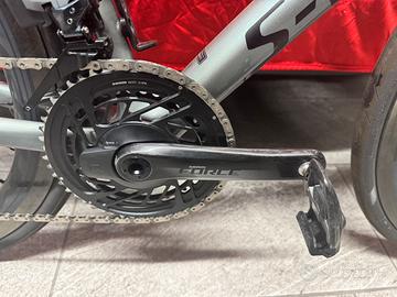 Montata con cambio SRAM force elettronico a 12 velocita con misuratore di potenza, ruote in carbonio Fulcrum Wind DB 55.
