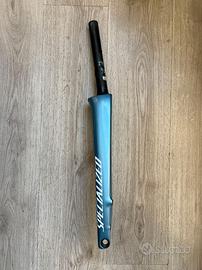 Vendo forcella anteriore S-Works Tarmac SL8 colore glacial metallic. Ne ho dovuto acquistare una nuova perché questa è stata tagliata troppo bassa per il mio fit. Questa forcella è utilizzata per le taglie 54/56/58. Tagliata in questo modo, può essere utilizzata col massimo degli spacers sulla taglia 54, 15 mm sulla taglia 56 e nessuno sulla taglia 58.