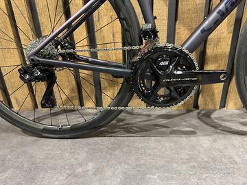 Telaio e Curva nuovi con garanzia da registrare. Componenti usati in ottimo stato. Specifiche: Telaio S-Works Tarmac SL8 FACT 12r Carbon, Rider First Engineered™, Win Tunnel Engineered, Clean Routing, Threaded BB, 12x142mm thru-axle, flat-mount disc. 685g frame. Forcella S-Works FACT 12r Carbon, 12x100mm thru-axle, flat-mount disc Reggisella S-Works Tarmac SL8 Carbon seat post, FACT Carbon, 15mm offset Collarino sellaTarmac integrated wedge Deragliatore anteriore: Shimano Dura-Ace Di2 Deragliatore posteriore: Shimano Dura-Ace Di2 Pedivella: Shimano Dura-Ace 172,5mm Powermeter Freni: Shimano Dura-Ace Ruote: Roval Alpinist CLX Pneumatici: Specialized Sella: Specialized S-Works Power Manubrio: Roval Cockpit 400x100 Pacco pignoni : Shimano Dura-Ace 11-30T