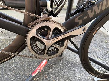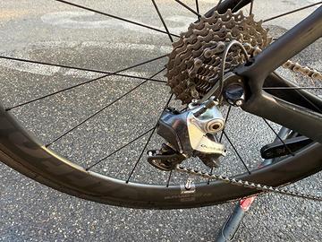 Specialized s-works venge: monta gruppo shimano 11v Di2. Cassetta pIgnoni 11-30, guarnitura 50-34 oltre guarnitura dura ace con pedivelle 52-36. Monta cerchi in carbonio in graphene VITTORIA QURANO DA 46 con mozzi DT swiss. Monta manubrio integrato in carbonio DEDA ALA NERA (€ 700), pneumatici CONTINENTAL da 28 GRAN PRX 5000 KM 300. Condizioni OTTIME.