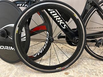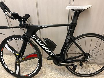Vendo bici completa specialized shiv tt s-works taglia s Così accessoriata: - gruppo sram red 12v - guarnutira da 172,5 con corone a scelta tra mono 50T, doppia 52-29 oppure 54-41. Tutte con misuratore quarq - pacco posteriore a scelta tra 10-26/10-28/10-30 - ruota lenticolare corima - ruota anteriore mavic cosmic - supporto garmin - sella fizik - pedali look blade carbon (usati con qualche segno ma perfettamente funzionanti) - accessori e spessori originali x adattare il manubrio in altezza e larghezza poggiagomiti - prolunghe originali “flat” più prolunghe USE in carbonio con curvatura da 60* (attualmente montate) La bici e la componentistica sono in ottime condizioni