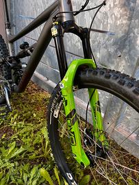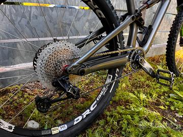 Vendo Specialized Status 160 anno 2021, taglia S4 (corrispondente a M/L). Telaio con geometria Mullet nativa (ruota anteriore 29" e posteriore 27.5"), progettata per massima maneggevolezza ed efficienza nei tratti tecnici e in park. La bici presenta un montaggio custom ottimizzato per prestazioni superiori rispetto all’originale: • SOSPENSIONI: Forcella DVO Diamond (da revisionare) e Ammortizzatore RockShox Super Deluxe Select+. • FRENI: Impianto Magura MT5 a 4 pistoncini. Disco anteriore da 203mm e posteriore da 180mm. • TRASMISSIONE: Deragliatore posteriore SRAM GX Eagle. • RUOTE: Cerchi DRC Big Hit con configurazione Mullet. • COMPONENTE GUIDA: Manubrio Switch in carbonio e reggisella telescopico con escursione da 170mm. STATO E CONDIZIONI: La bici è usata e presenta normali segni di utilizzo (graffi da trasporto e pietrisco) coerenti con la disciplina, puramente estetici. Meccanica in ordine e pronta all'uso. Prezzo trattabile Venduta senza pedali flat