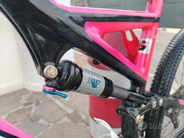 Vendo mountain bike biammortizzata Specialized Stumpjumper FSR in alluminio M5. Si tratta dell'esclusiva versione "Test Bike" con colorazione rosa fluo e nero, molto rara e d'impatto estetico. La bici è montata con ruote da 29 pollici, ideale per chi cerca stabilità e capacità di superare ostacoli su ogni tipo di sentiero.