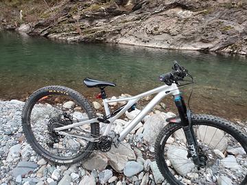 bici del 2021 forcella Fox 36 mono dp X2 sellino telescopico taglia M ruote 27'5 ruota posteriore tubeless ruota anteriore camera d'aria copertoni appena cambiati la bici non necessita di lavori