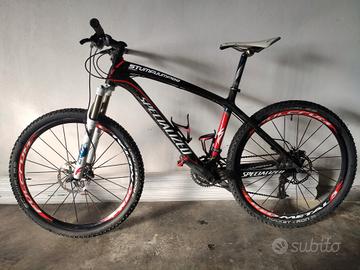 Vendo splendida Specialized stumpjumper expert tg M con telaio in carbonio con qualche striscio dovuto al normale utilizzo. La bici monta forcelle fox factory 32, cambio sram x9, ruote fulcrum red metal 3 26 gommate shwalbe rocket ron, freni a disco idraulici elixir exc. La bici non è mai caduta ed è sempre stata tenuta bene in garage. Disponibilità di prova