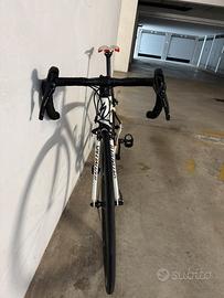 Telaio alluminio leggero, forcella, reggisella e manubrio in carbonio.