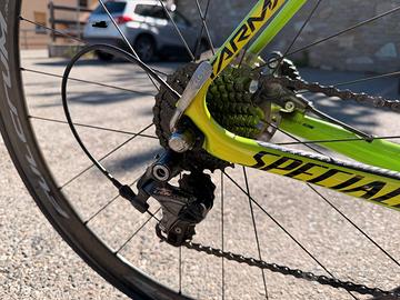 Bici da corsa Specialized Tarmac Expert Disc taglia 52/S Forcella: S-Works FACT carbon, full monocoque, size-specific taper, disc carbon Deragliatore anteriore: Shimano Ultegra Deragliatore posteriore: Shimano Ultegra Pedivella: FSA Freni: Shimano Ruote: Fulcrum Race Reggisella: S-Works FACT carbon, 20mm offset Manubrio: Specialized Expert Shallow Drop, alloy, 123mm drop, 75mm reach Pacco pignoni: Shimano Ultegra Pedali: Nylon, 105x78x28mm, loose balls w/ reflectors Prezzo poco trattabile