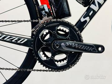Specifiche tecniche: -Misura: 52 -Telaio: Specialized Tarmac S-Works Disc full carbon -Forcella: Specialized Tarmac S-Works Disc full carbon -Deragliatore posteriore: Shimano Dura-Ace 9050 Di2 11v -Deragliatore anteriore: Shimano Dura-Ace 9050 Di2 -Guarnitura: Specialized S-Works Carbon 170mm 52/36t -Cassetta pignoni: Shimano Dura-Ace 9000 11v 11/30 -Comandi: Shimano RS785 Di2 11x2v disco idraulico -Freni: Shimano BR-HS785 disco idraulico -Disco Freno: Shimano RT81 140mm anteriore, Shimano RT81 140mm posteriore -Ruote: Roval CLX 32 Carbon -Pneumatico anteriore: Vredestein Freccia 700x25 -Pneumatico posteriore: Vredestein Freccia 700x25 -Reggisella: Specialized S-Works full carbon -Sella: Specialized S-Works -Manubrio: Specialized S-Works Band 400mm Carbon -Attacco manubrio: Specialized S-Works 100mm -Peso in kg (approx): 7.54 -Prezzo: € 2.300,00 -Prezzo promo: € 1.955,00 *Salvo errori e/o omissioni Bici da corsa usata Specialized Tarmac S-Works in buone condizioni e completamente controllata Cicli Viviani è un negozio fisico e online che lavora da più di 30 anni nel mondo del ciclismo, concessionario Pinarello, Giant, Scott, Cannondale, Shimano Service Center, Campagnolo, Fulcrum, Garmin, Castelli, Sportful e moltri altri. Ulteriori offerte, bici nuove e usate sono disponibili online presso il nostro sito ufficiale.