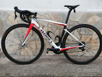 Bici composta da telaio carbonio Specialized S-Works Tarmac SL6 in taglia 49.Gruppo meccanico Shimano Durace 11v con misuratore di potenza Guarnutura S-Works Power Cranks-Dual(doppia misurazione destro e sinistro),corone 52/36 ,pedivelle 170,pacco pignoni 11-28. Ruote Roval Rapide CLX 32 copertoncino. Piega in carbonio 42c/c ,attacco manubrio S-Works 90mm. Vendo senza pedali e con un portaborraccia(no quelli in foto).La bici pesa kg 6,630 ,con portaluce post e staffa garmin.
