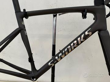 TELAIO BICI DA CORSA SPECIALIZED TARMAC S-WORKS SL7 DISC USATO MISURA 56 ANNO 2022 Telaio Specialized S-WORKS TARMAC SL7 DISC usato misura 56, versione Specialized sempre più veloce ma anche leggera. Specialized ha unito l'aerodinamica del Venge e l'agilità del Tarmac combinando una unica bici da strada al massimo delle prestazioni di entrambe. Tubazioni creati con il nostro FreeFoil Shape Library formano il nuovo e leggerissimo telaio Rider-First Engineered™. La Specialized Tarmac, la bici più veloce su qualsiasi strada. Il telaio S-Works Tarmac SL7 è il perfetto punto di partenza per creare la bici dei tuoi sogni. Questo Telaio Specialized S-Works Tarmac disc usato è in condizioni BUONE ed è garantito dalla formula "usato Mondobici". Da assemblare con i componenti preferiti. SCHEDA TECNICA TELAIO: S-Works Tarmac SL7 FACT 12r Carbon, Rider First Engineered™, Win Tunnel Engineered, Clean Routing, Threaded BB, 12x142mm thru-axle, flat-mount disc FORCELLA: S-Works FACT Carbon, 12x100mm thru-axle, flat-mount disc ATTACCO: Tarmac integrated stem, 6-degree 100 mm MANUBRIO: Specialized Roval Rapide carbon drop 125 mm, reach 75 mm, width 440 mm, Flare 2° REGGISELLA: 2021 S-Works Tarmac Carbon seat post, FACT Carbon, Di2 Compatible, 20mm offset COLLARINO: Tarmac integrated wedge ANNO: 2022 MISURA: 56 CONDIZIONI: BUONE PESO: 2 kg ca KM PERCORSI: 9.000 CONSIGLIATO PER ALTEZZA: 1,75 m/1.80 m PREZZO DI LISTINO DA NUOVA: € 5.550,00 (UPGRADE manubrio) risparmi 45% ca PER MAGGIORI INFO WWW.MONDOBICISTORE.COM