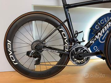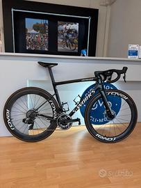 Specialized Tarmac S-Works SL8, anno 2025, taglia 56, colorazione Project Black, Gruppo Sram Red AXS 12v power meter, Ruote Roval Rapide CLX carbon. Manubrio Carbon integrato. Sella Specialized Carbon 3D. Rapporti 48/35 e cassetta 10/33 e pedivella da 175 mm.