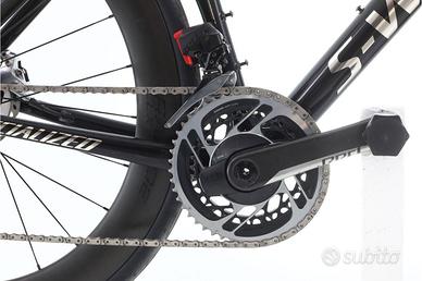 Bici ricondizionata | 1 anno di garanzia | Foto reali | Disponibilità immediata | Finanziamento da 554 € in 12 mesi | Spedizione in tutta Italia. · Prezzo listino: 14500 € · Scontata su zyclora.it: 6655 € Bicicletta da corsa - Telaio in Carbonio - Taglia 54 - Deragliatore: SRAM Red AXS - 12 Velocità velocità - Cassetta: 10-33-T - Leve del cambio: SRAM Red AXS - Pedivelle: SRAM Red - Corone: 48-35-T - Freni: SRAM Red - Ruote: Roval Rapide CLX - Materiale della potenza: Carbonio - Manubrio: - Reggisella: Carbonio Maggiori informazioni sulla bici La Specialized Tarmac SL7 S-Works è la bicicletta da strada definitiva, progettata per offrire velocità e precisione in ogni uscita. Dotata di trasmissione SRAM Red AXS, garantisce cambi di marcia fluidi ed efficienti, ideali per i ciclisti più esigenti. Il telaio in carbonio avanzato combina leggerezza e resistenza, mentre i freni a disco assicurano prestazioni superiori in ogni condizione. L'estetica aerodinamica e i componenti di alta gamma rendono questa bici una scelta imbattibile per chi cerca prestazioni e stile ad ogni pedalata. Esaminamo ogni bici in dettaglio · Controlliamo l'integrità strutturale del telaio e delle ruote. · Controlliamo il funzionamento delle sospensioni, della trasmissione e dei freni. · Esaminiamo tutti gli articoli soggetti a usura e modifichiamo quelli necessari per garantire il corretto funzionamento. · Analizziamo il funzionamento del motore, della batteria e del display, nel caso delle bici elettriche. · Effettuiamo la lubrificazione completa e il serraggio di tutte le viti della bici.