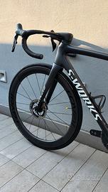 Bicicletta acquistata presso un concessionario specialized a Giugno 2024 (con ricevuta di acquisto) ancora in garanzia (telaio garantito a vita), in eccellenti condizioni, usata pochissimo, e montata come da specifiche S-Works. modello: Tarmac SL8 S-WORKS composta da: - Telaio S-Works SL8 FACT 12r Carbon TG.54 colore SATIN CARBON/Cyan To Blue Viavi; - Gruppo Dura Ace Di2 con 4iiii Powermeter; - Manubrio Roval Cockpit; - Ruote Rapide CLX II; - Sella Body Geometry S-Works Power in carbonio; - Reggisella S-Works Tarmac SL8 in carbonio, 0mm offset - Cambio Shimano Dura-Ace R9250, 12-speed - Cassetta Pignoni Shimano Dura-Ace CS-R9200 12V 11-34 - Corone anteriori Shimano montate 50/34 (opzionale 52/36) con pedivelle Dura-Ace 172,5 - Movimento centrale in ceramica mod. CERAMICSPEED (montato successivamente e non di serie al costo di € 250) - Freno anteriore Shimano Dura-Ace R9270, hydraulic disc 160mm - Freno posteriore Shimano Dura-Ace R9270, hydraulic disc 140mm - Porta borraccia in carbonio SUPACAZ (inclusi nel prezzo) Regolarmente registrata sul sito specialized.com Possibilità di vederla dal vivo. Vendo per scarso utilizzo. NO PERMUTE e NO PERDITEMPO. Prezzo TRATTABILE. No ad offerte ridicole