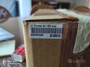 Specialized SWorks Tarmac SL7 Taglia L/58 per altezze 180-190cm monta Gruppo completo Shimano Dura-Ace Di2 R9170 11v Pacco pignoni 11-30 Guarnitura 50-34 con pedivelle da 175mm attacco manubrio 110, ruote FULCRUM CMPTZN DB AFS 2 WAY FIT DISC con pneumatici Continental s5000 28*700c Sella Selle Italia SLR superflow kit carbonio (sostituita quella in foto), pedali Look Keo Blade Carbon Ceramic Ti, nastro supercaz , due portaborracce Rib cage II, Includo manuale utente Specialized e caricatore cambio Shimano Di2 . normali segni d'uso