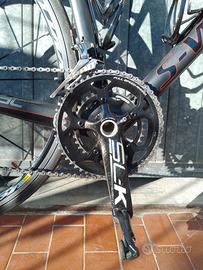 Vendo Specialized Tarmac Sl4 Sworks taglia 56 in condizioni perfette, pari al nuovo, senza un graffio, no gare, no acqua. Negli ultimi anni è stata usata al massimo 5 volte all'anno, dato che principalmente esco in gravel ed MTB. Cambio Sram Red 22 revisionato alla perfezione. Nastro manubrio Supacaz, attacco manubrio, reggisella, sella e portaborraccia Specialized Sworks. Guarnitura fsa slk 52/36 in carbonio. Ruote mavic elite s con pista in alluminio ed ovviamente freni rim sempre Sram Red. La bici pesa 7kg.