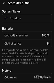 La bici, attualmente, possiede 10.677 km; il motore è stato completamente revisionato da Axevo a 9300 km e la batteria, da 500 Wh, che attualmente ha 64 cicli di carica, è stata sostituita a maggio 2022. La bici, in buona parte, è pellicolata.