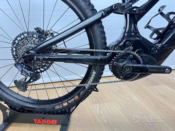 Specialized Turbo Levo Comp Alloy del 2022 usata garantita ma completamente revisionata dalla nostra officina prima di essere fotografata con sostituzione filo e guaina cambio, catena e manopole nuove, sospensioni revisionate circa 6 mesi fa. La bici ha percorso 12300 km e 157 cicli di ricarica possono sembrare tanti ma nonostante i chilometri percorsi ha il 100% di salute della batteria, e tutto è perfettamente funzionante. Le condizioni estetiche della bici sono buone può presentare dei segni di normale utilizzo ma solo superficiali. Taglia S3 che corrisponde alla taglia M adatta per altezze da 170 a 176 cm.