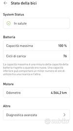 Vendo Specialized Turbo Levo Comp Alloy 2023 (taglia S3) con 4500 Km circa, 76 cicli di ricarica e batteria al 100%. Presenta qualche graffio legato all'uso ma che non compromette la funzionalità della bici. INFO TECNICHE: Motore integrato Turbo Full Power 2.2 con batteria 700Wh e l'unità di controllo avanzato, la TCU, forniscono 90 Nm di coppia e 565 watt di potenza Batteria: Specialized M3-700, Integrated battery, 700Wh Telaio: Alluminio Forcella: Fox Rhythm 36, 160mm travel Sospensioni Ammortizzatore: FOX FLOAT X Performance, LSR, 2-position lever, 55x210mm Freni: SRAM Code R, 4-piston caliper, hydraulic disc, 200mm Comandi cambio: SRAM GX, trigger, 12-speed Cambio posteriore SRAM GX Eagle, 12-speed Pacco Pignoni: Sram XG-1275, 12-speed Catena: SRAM NX Eagle, 12-speed Raggi: DT Swiss Industry Pneumatico anteriore: Butcher, GRID TRAIL casing, GRIPTON® T9 compound, 2Bliss Ready, 29x2.6" Pneumatico posteriore: Eliminator, GRID TRAIL casing, GRIPTON® T7 compound, 2Bliss Ready, 27.5x2.6" Pneumatici Tubeless Manubrio: Specialized, 6061 alloy, 6-degree upsweep, 8-degree backsweep, 30mm rise, 780mm width Sella con Reggisella: Bridge Comp, Hollow Cr-mo rails, 155/143mm Portaborraccia Specialized Peso: 25kg Pedali non inclusi Disponibile per altre info e foto, possibilità di visionarla, non spedisco