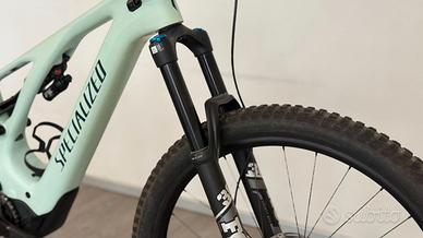 Taglia S3. KM 1100 SPECIFICHE: Telaio: FACT 11m full carbon, ruota anteriore da 29″, ruota posteriore da 27.5″, Ammortizzatore posteriore: FOX FLOAT X Performance, LSR, leva a 2 posizioni, 55x210mm. Forcella: FOX FLOAT 36 RHYTHM 29, ammortizzatore GRIP, offset 44 mm, regolazione dello sweep a 2 posizioni, 15x110 mm, cannotto conico da 1,5", escursione 160 mm. Attacco manubrio: attacco manubrio in lega, alesaggio della barra da 35 mm. Nastro: impugnature da trail specializzate. Manubrio: Specialized, lega 6061, upsweep di 6 gradi, backsweep di 8 gradi, rise di 30 mm, larghezza di 780 mm. Freno anteriore: SRAM Code R, pinza a 4 pistoncini, disco idraulico, S1-S3: 200 mm, Freno posteriore: SRAM Code R, pinza a 4 pistoncini, disco idraulico, 200mm. Deragliatore posteriore: SRAM GX Eagle, 12 velocità. Leve del cambio: SRAM GX Eagle, 12 velocità. Cassetta: SRAM XG-1275, 12 velocità, 10-52t. Catena: SRAM NX Eagle, 12 velocità. Guarnitura: Praxis forgiata M30, offset personalizzato, 160 mm. Corone: SRAM X-Sync Eagle, 104 BCD, 32T, acciaio. Mozzo anteriore: lega, cuscinetti a cartuccia sigillati, perno passante 15x110mm, 28 ore. Cerchi: Specialized 29, lega hookless, larghezza interna 30mm, tubeless ready. Mozzo posteriore: lega, cuscinetti a cartuccia sigillati, perno passante 148 mm x 12 mm, 28 ore. Relatori: DT Swiss Industry. Pneumatico anteriore: Butcher, carcassa GRID TRAIL, mescola GRIPTON® T9, 2Bliss Ready, 29×2.6″. Camere d'Aria: Standard, Valvola Presta. Pneumatico posteriore: Eliminator, carcassa GRID TRAIL, mescola GRIPTON® T7, 2Bliss Ready, 27.5×2.6″. Reggisella: X-Fusion Manic, regolabile all'infinito, testa a due bulloni, passaggio cavi inferiore, leva SLR LE remota, 34,9, S3: 150 mm, Motore: Motore Specialized Turbo Full Power System 2.2. Batteria: Specialized M3-700, batteria integrata, 700Wh. Caricabatterie: caricatore personalizzato, 42V4A con spina Rosenberger.