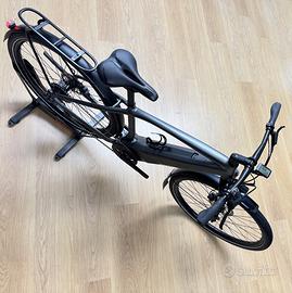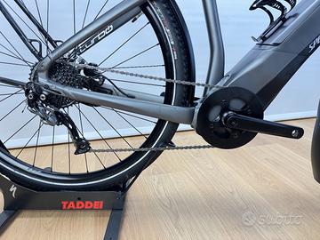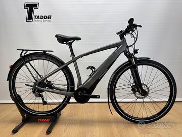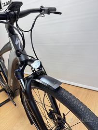 Specialized Turbo Vado 3.0 del 2020 tenuta in buone condizioni, utilizzata per brevi spostamenti in città da pensionato ed adesso sostituita per passaggio a nuovo modello, presenta qualche segno di utilizzo ma la meccanica è tutta funzionante e in buono stato di usura, ha percorso solo 2571 Km e 41 ricariche. Assemblata come di serie con fari integrati, parafanghi e portapacchi, motore Brose con batteria integrata al telaio da 460Wh, perfetta per chi cerca una signora bici elettrica da passeggio, con un autonomia fino a 70 km. Taglia M adatta per uomini o donne alti da 168 a 176 cm circa.