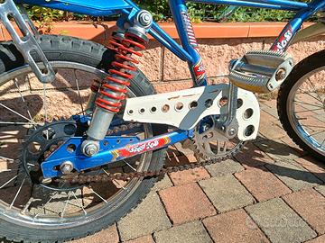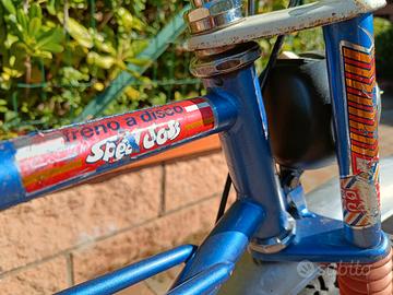 Vendo bici di cross vintage epoca speedcross ( tipo saltafoss ) con freno a disco anteriore ( una vera chicca davvero rara ) e tamburo posteriore. Sella lunga ampiamente regolabile, senza cambio, full suspended ( ammortizzatori posteriori e forcella ammortizzata ) . Segni di utilizzo e del tempo ma ancora in splendida forma. tutto funzionante, Nessun intervento da fare. Gomme nuove.