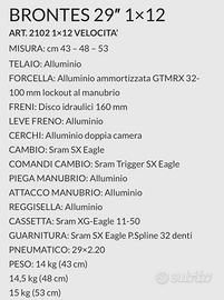 Vendo bici SMP Brontes 29” della foto, la bici presenta qualche segno di usura da gite in fuoristrada . Taglia della bici : L.Mai uso gara , usata solo per tragitto casa lavoro o per gite tranquille .