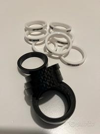 Spessori NUOVI per modificare la quota dell’attacco manubrio. Ne ho diversi tipi, in alluminio, in plastica FSA (sia bianchi che trasparenti), in carbonio.