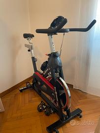 Vendo bike da spinning usata pochissimo, con pedali sgancio, volano da 13kg. Descrizione prodotto e misure nelle foto.