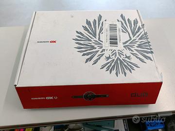 Guarnitura Sram GX Eagle 175mm Dub Nero - Nuova !!! Trasmissione a 12 velocità che offre una versatilità eccezionale e un altissimo livello di prestazioni Concetto DUB che fornisce maggiore rigidità, tenuta ottimizzata delle impurità e compatibilità con la maggior parte dei telai Asse in alluminio per una leggerezza ottimale Corona X-Sync 2 che offre una tenuta perfetta della catena, con una migliore evacuazione del fango e una longevità straordinaria Attacco Direct Mount tanto semplice ed efficace quanto elegante