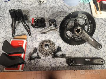 vendo gruppo SRAM Red etap 11v per freni a disco con guarnitura 52/36 pedivelle 172,5 pacco pignoni 11/28 comandi Red e pinze freno Force deragliatore anteriore Red cambio