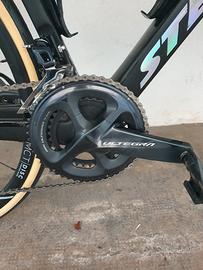 Bici da corsa in carbonio con passaggi fili interni. Ruote in alluminio per copertoncino. Gruppo ultegra 11v meccanico. Freni a disco idraulici. Misura 52, pari ad una M. Io sono alto 1e78. Bici in stato ottimo. Nastro nuovo, dischi nuovi, catena , pacco pignoni e fili vari del cambio nuovii. Copertoni nuovi , montati ma mai usati. Bici pronta all'uso e perfettamente regolata. Sella in carbonio top di gamma. Pedali non compresi. Ritirabile a Modena, non spedisco. vendo per inutilizzo.