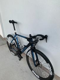 telaio: stevens superprestige 2019 taglia 56 (ho ancora la scatola se la volete) max 40mm di passaggio ruote forcella ancora da tagliare gruppo: pedivelle durace r9200 172.5 corone 52/36 misuratore di potenza pedivella sinistra 4iiii cassetta ultegra 11/32 deragliatore 105 con pulegge ceramiche manubrio lambda racing 33-40cm attacco manubrio 90mm (ho anche un 110mm) reggisella elite-one carbon 27.2 130gr sella specialized romin evo ruote: ECC carbon 50mm (grafiche enve) gomme continental GP5000 TT tr 25/28mm dischi galfer road 160mm la bici nasceva come cicloross quindi puo effettuare gravel leggero senza problemi, è omologata uci , vendo senza accessori: portaborraccia in carbonio, attaco garmin, pedali look carbon… prezzo trattabile