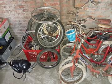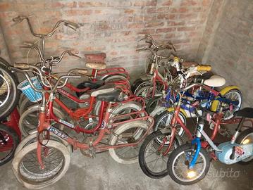 stock di bici per bambini tipo Graziella, con anche una cassa di ricambi ,tipo cerchi da 20 e copertoni dell'epoca. le Bisi sono tutte da restaurare.
