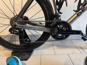 A malincuore per motivivi di salute vendo bici completa DeRosa 70 taglia 54.5 del 2024 con 5000km. Colore silver opaco, Montata Shimano durace di2 12V. 50/34 pacco 11/34, ruote durace C60, manubrio Vision metron, pedali look carbon con potenziometro. Pari al nuovo.