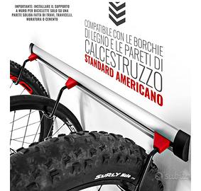 Si adatta a varie dimensioni di ruote - Ampi ganci sovradimensionati montano ruote / pneumatici fino a 5" rispetto alla concorrenza sotto i 3". Il sistema di stoccaggio si adatta alla maggior parte dei tipi di bici: strada, ciclocross, ibrido, bambini, MTB e anche Fat Bikes. I ganci di alta qualità offrono alle ruote una grande protezione quando sono appese. Il design dei ganci è 'angolato', il che rende facile il montaggio delle biciclette e toglie la pressione alle ruote e ai raggi.