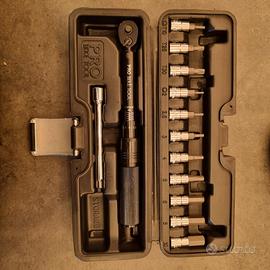 Vendo assieme o separatamente kit chiave a cricchetto dinamo metrica Pro bike tool, con prolunga da 10 cm e 11 bussole di cui Torque T10 T25 T30 ed esagonali dal 2, 2.5, 3, 4, 5, 6, 8, 10 per il corretto serraggio di tutte le viti presenti su bici di un certo livello.
