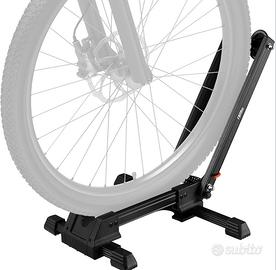 Materiali: la staffa e il supporto per ruota sono realizzati in lega di alluminio leggera, offrendo una maggiore portabilità rispetto all'acciaio e una maggiore stabilità e durata rispetto ai portabici in plastica. Parcheggiare la bicicletta è semplice come spingerla delicatamente e può essere