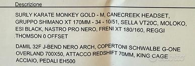 Vendo Surly karatè Monkey Gold. Taglia M . Bicicletta usata per 15 gg , vendo per errata taglia . Acquistata nuova montata come in descrizione .
