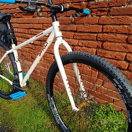 Surly Karate Monkey Custom - Taglia M Caratteristiche Principali: Taglia: M (disponibili montaggi personalizzati in tutte le taglie; S, M, L) Telaio: Acciaio CroMoly 4130, indistruttibile e versatile. Trasmissione: Shimano 2×11 per un range di rapporti perfetto su ogni pendenza. (a scelta anche 1x11 o 1x12) Freni Shimano XT Attacco manubrio, manubrio e reggisella PRO Pedali Switch Ruote Custom: Mozzi artigianali Damil (Made in Italy) su cerchi DT Swiss E512, per il massimo della scorrevolezza e della robustezza. Setup: Pronto per il viaggio con finiture anodizzate. Plus Esclusivo: ✅ Bikefitting incluso nel prezzo per garantire la posizione perfetta in sella (fondamentale per evitare dolori nei lunghi viaggi). Robusta, essenziale, inarrestabile. Prezzo indicato per la proposta in foto. Contattaci per un montaggio personalizzato!