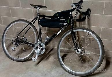Vendo , praticamente nuova km max percorsi 400. Montaggio personalizzato GRAVEL IN ACCIAIO SURLY MIDNIGHT SPECIAL 54 GRX 2X11 LIMITED Edition Telaio in acciaio con forcella Surly Midnight Special 54 nero incluso di collarino e perni passanti Ruote Ritchey Classic Zeta disc 12x100 12x142 Dischi 160mm 6 fori Shimano RT86 Copertoni Schwalbe G-one all round 40mm Gruppo di trasmissione Shimano GRX 2x11: Leve Shimano GRX 800 2x11 silver Pinze idrauliche Shimano GRX 810 silver Guarnitura Shimano GRX 810 48-31 Deragliatore ant. Shimano GRX 810 2x11 Cambio Shimano GRX 810 silver Pacco pignoni Shimano CS-8000 11-34 Catena 11v CN-601 Movimento Centrale Shimano BB-8000 Manubrio Salsa Cowchipper Deluxe silver 44cm Nastro manubrio in cotone, presa bassa in spugna Ritchey. Reggisella thomnson Attacco manubrio Salsa cycle. Sella brooks c17 e pedali well go. Tenuta benissimo zero graffi, zero caduta. Salsa Locomotive chiru kona